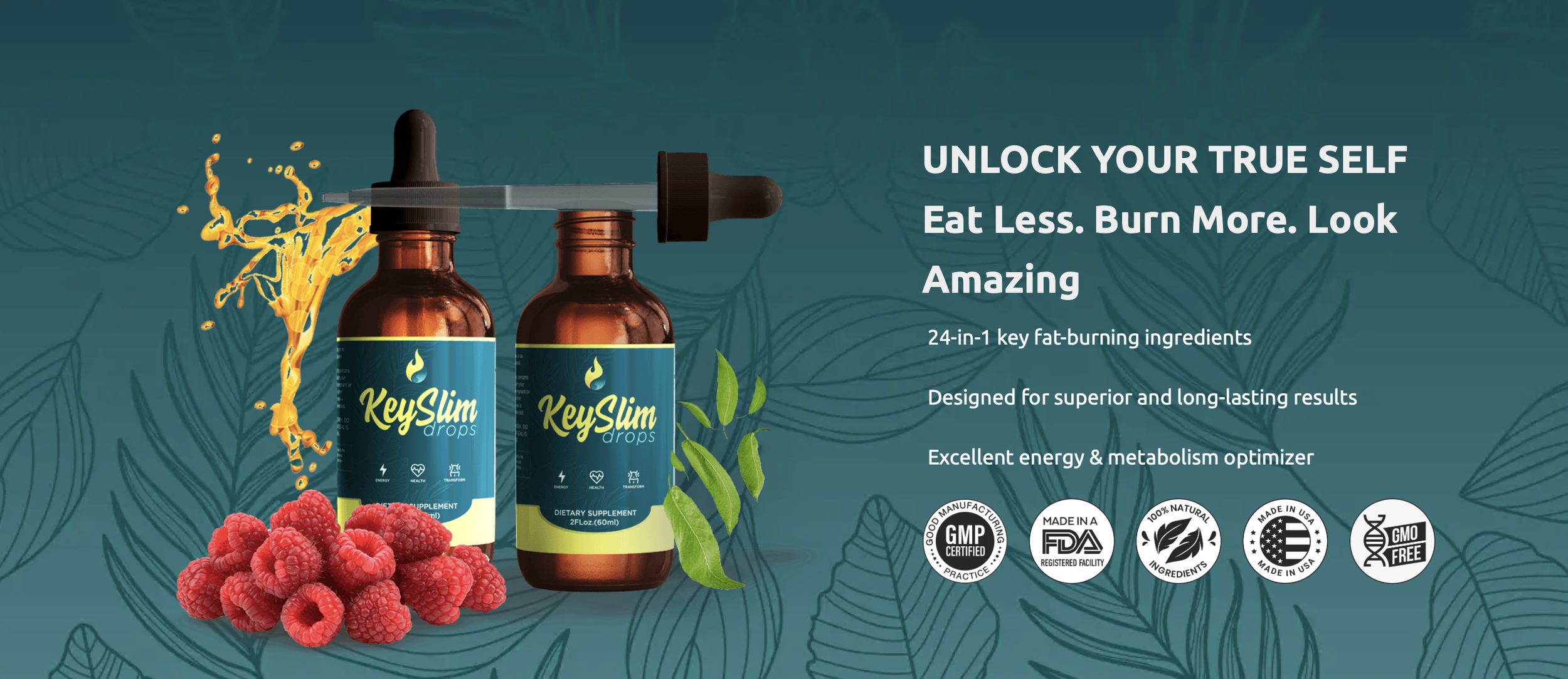KeySlim Drops is a liquid dietary supplement formulated to support healthy weight loss using a blend of natural ingredients. Unlike pills or powders, it comes in a convenient dropper form, making it easy to take sublingually (under the tongue) or mixed with water.